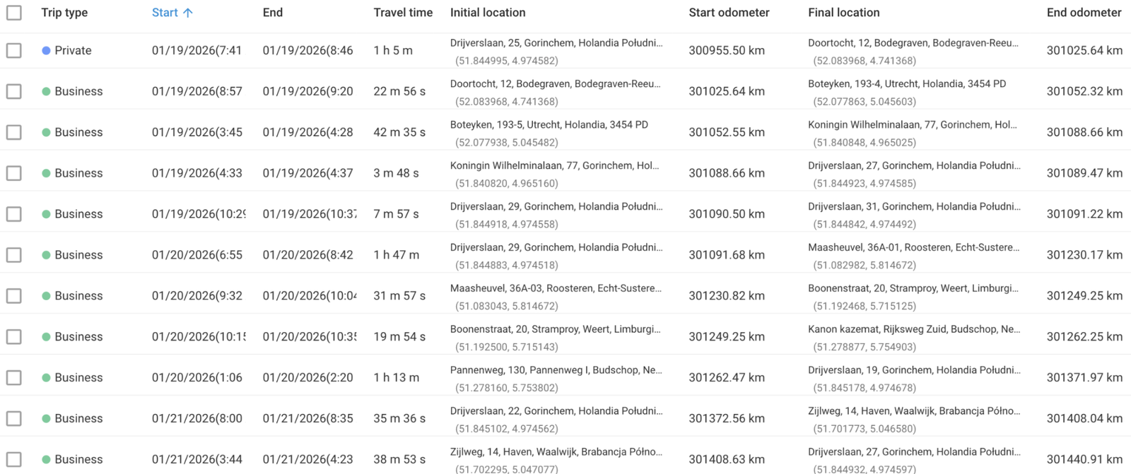 Nasz system automatycznie rejestruje wszystkie przejazdy służbowe, sam oblicza kilometrówkę i zapisuje pełną historię tras. Ty nie wpisujesz kilometrów, nie liczysz i nie poprawiasz błędów — wszystko dzieje się automatycznie w platformie. Na koniec po prostu pobierasz gotowy raport dla księgowej. Dane są kompletne, czytelne i zgodne z wymaganiami Belastingdienst, dzięki czemu możesz bezpiecznie wykorzystać je do rozliczeń firmowych. To nowoczesne rozwiązanie dla firm i ZZP, które chcą oszczędzać czas, uniknąć stresu i mieć kilometrówkę zawsze gotową.